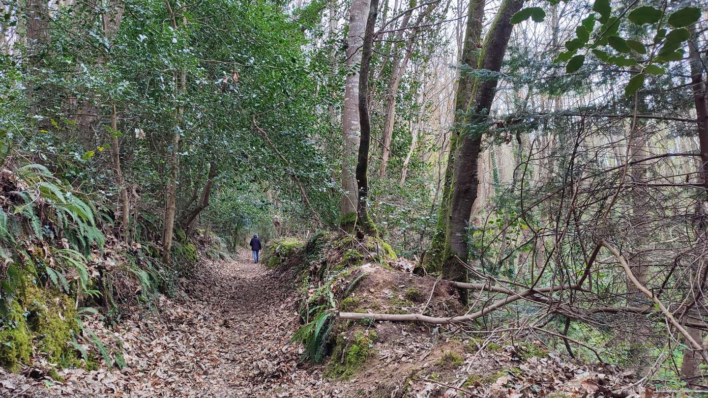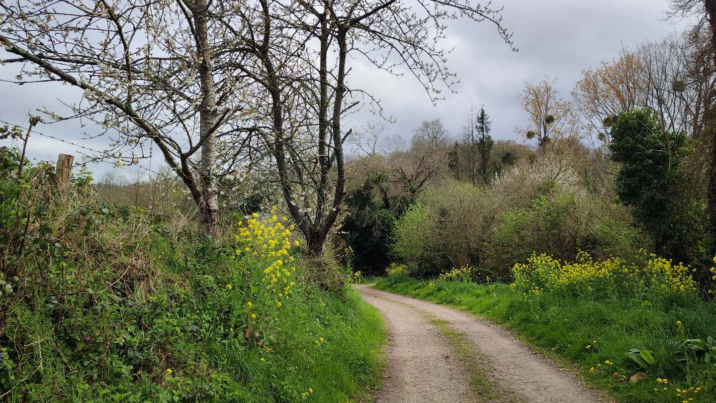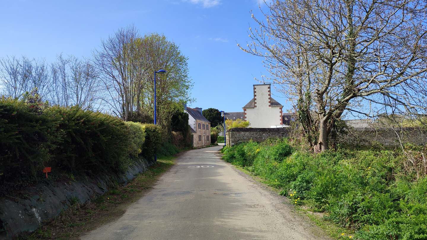 La première partie du parcours suit le circuit de Kerhalon à partir du parking du cimetière. L’itinéraire sillonne alors entre le bocage et habitations en campagne pour rapidement arpenter les chemins creux dans les bois sur le versant de la vallée du Douron.