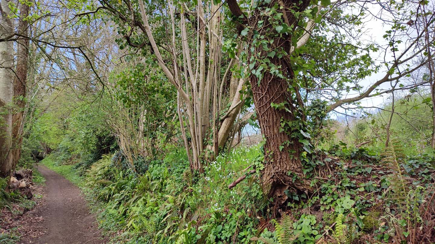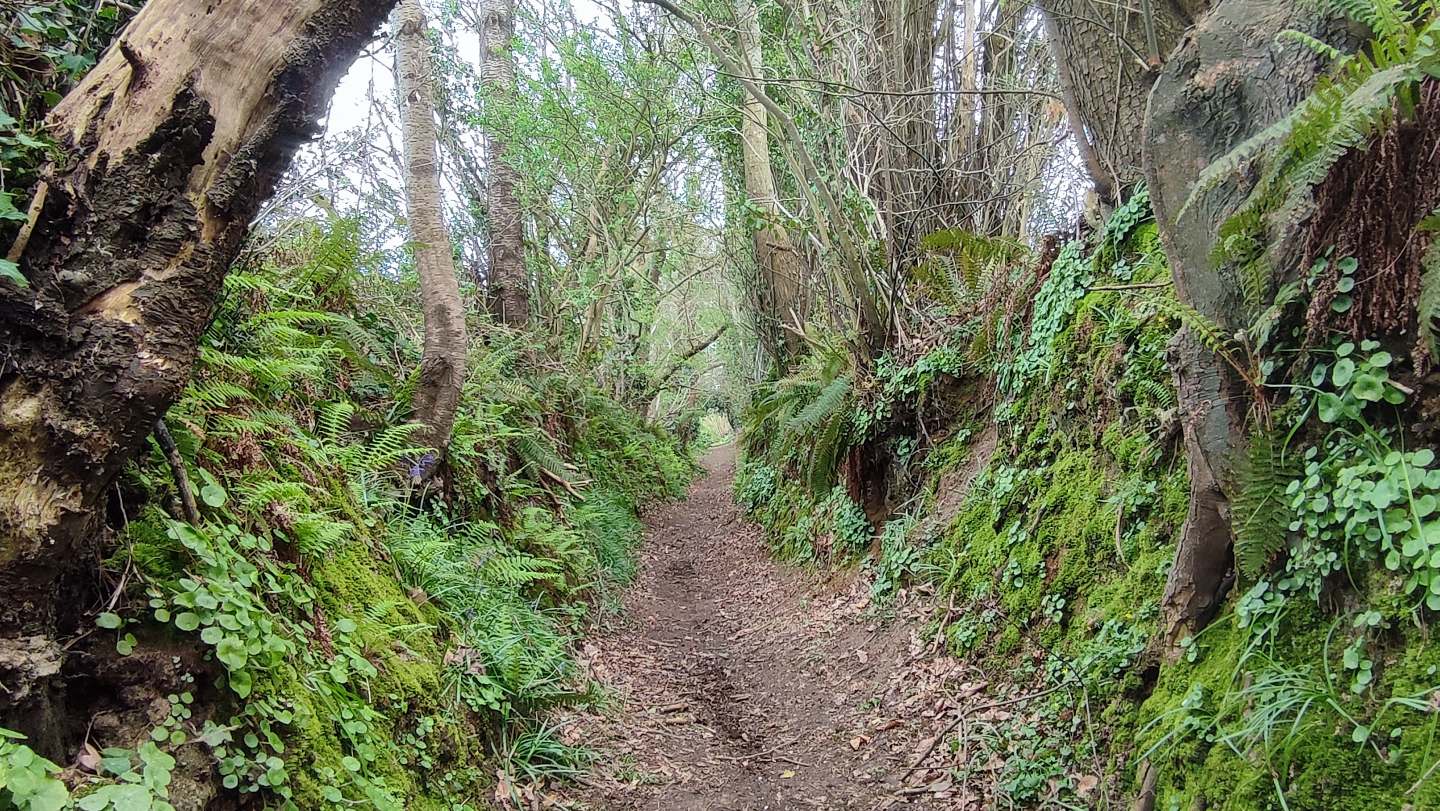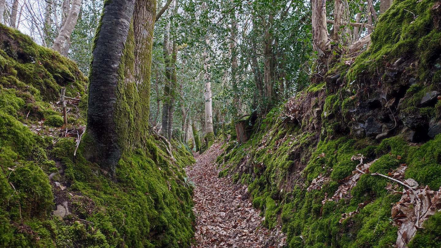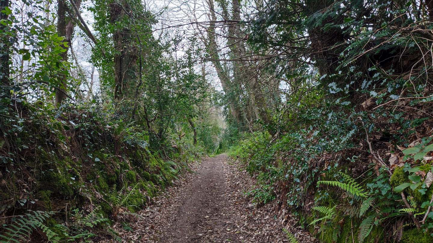 La première partie du parcours suit le circuit de Kerhalon à partir du parking du cimetière. L’itinéraire sillonne alors entre le bocage et habitations en campagne pour rapidement arpenter les chemins creux dans les bois sur le versant de la vallée du Douron.